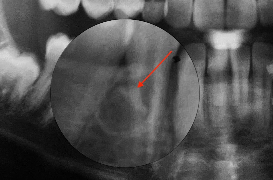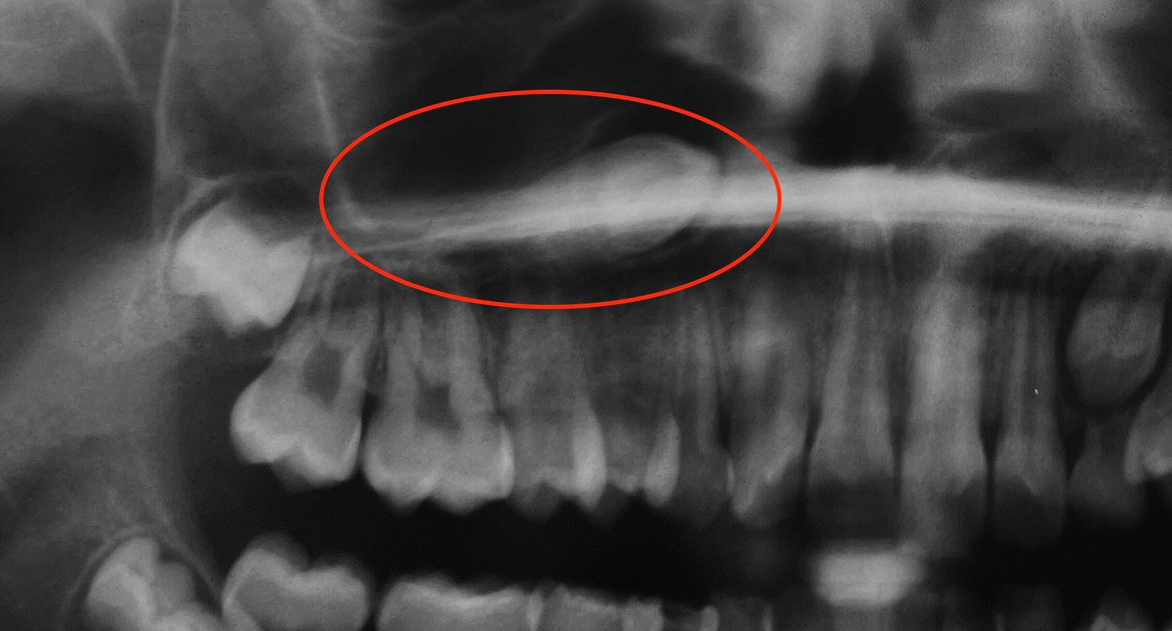 Rimozione di una cisti e agganciamento di un canino superiore incluso