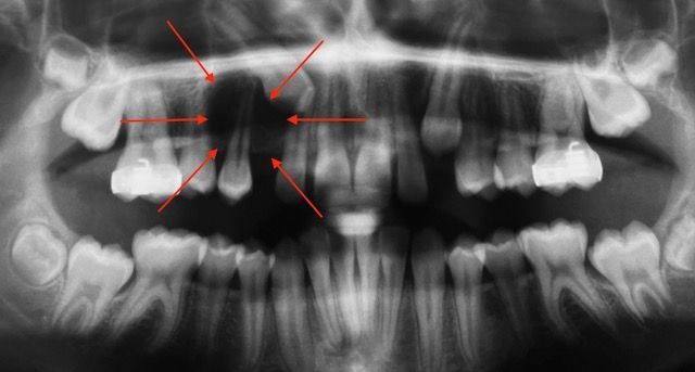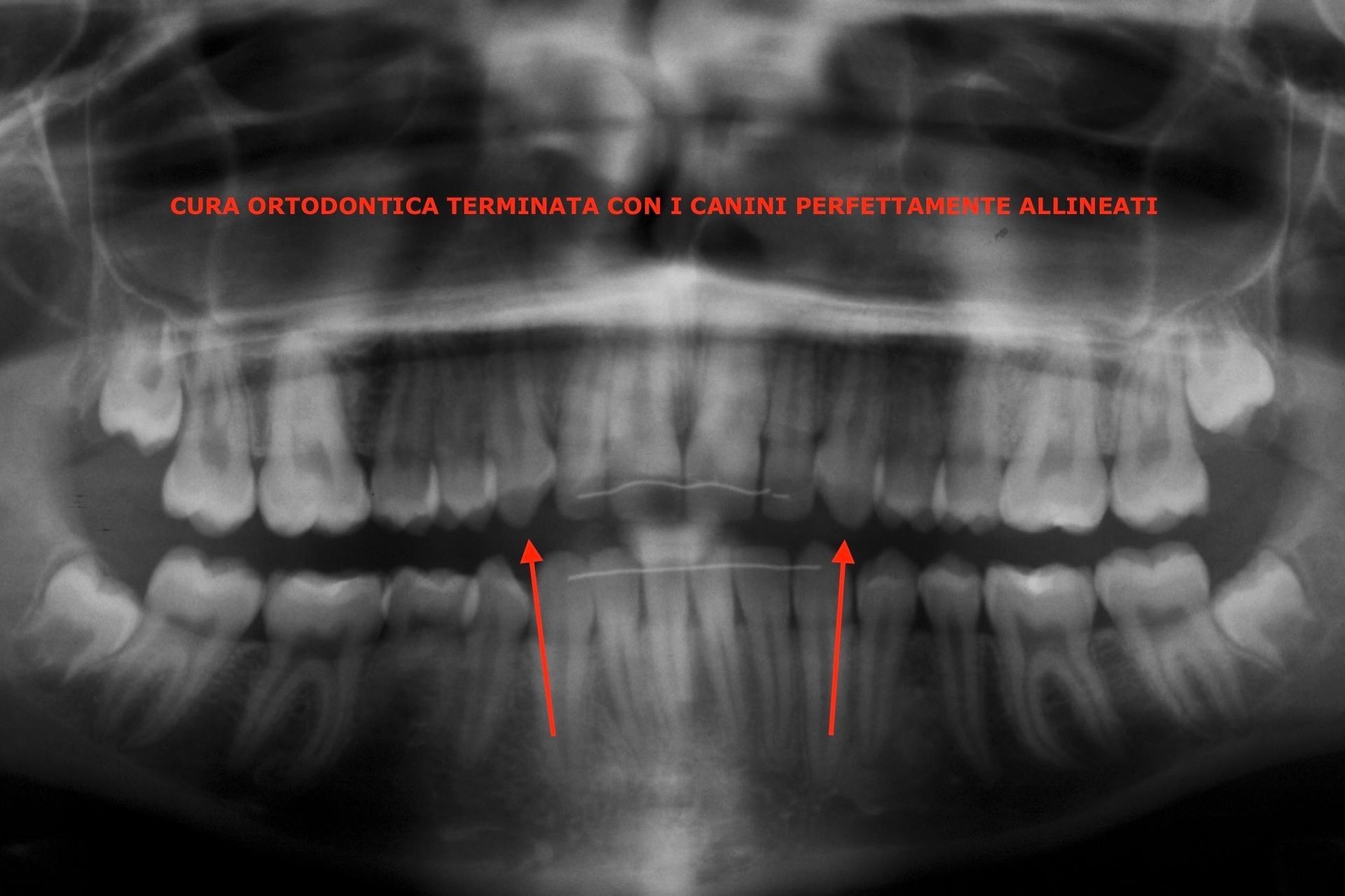 Entrambi i canini sono stati agganciati chirurgicamente per l'allineamento